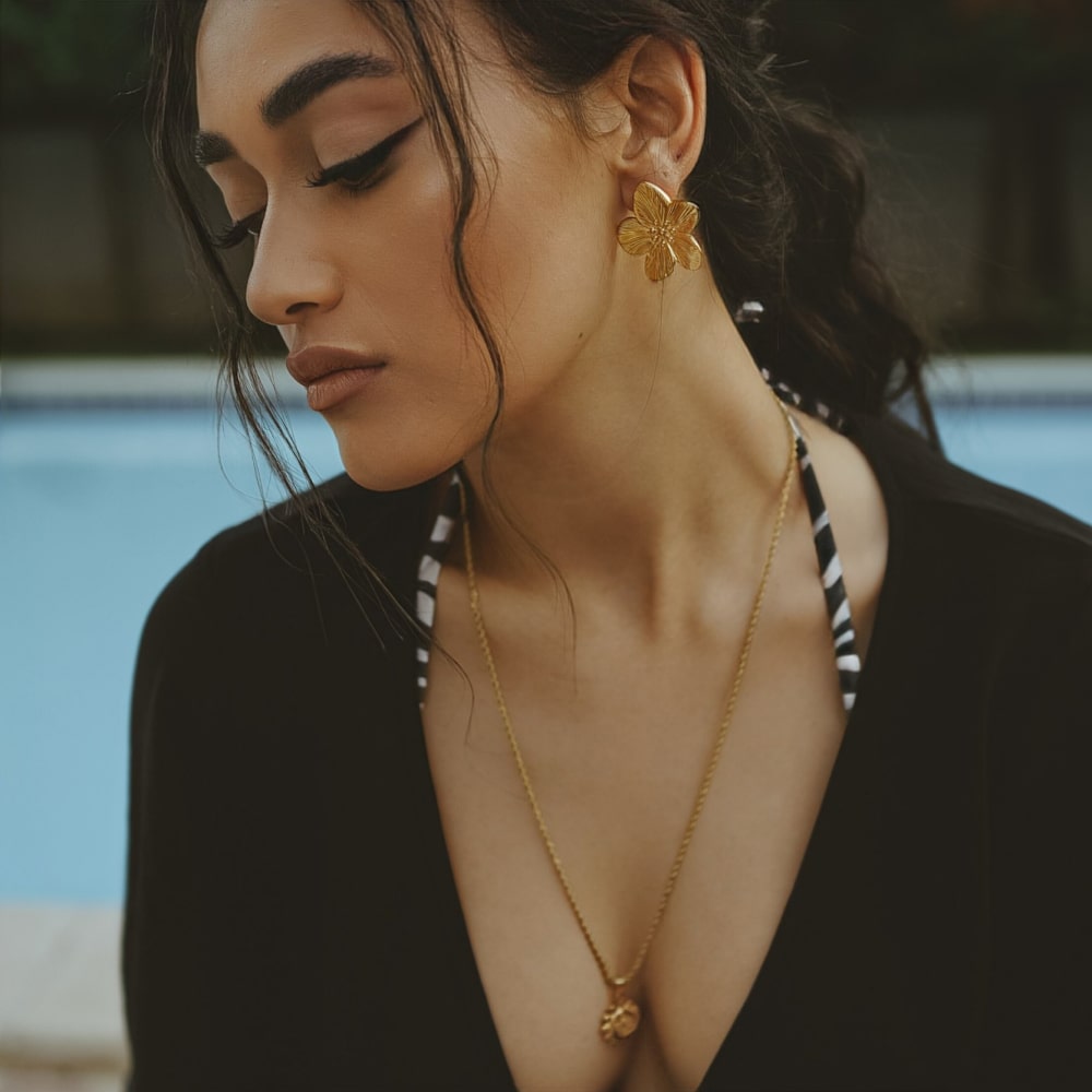 In molte culture tropicali l'ibisco è considerato un potente portafortuna e un simbolo di bellezza che trascende il tempo. Indossare gli orecchini "Blossom" è come portare con sé un frammento di un giardino esotico, un simbolo di rinascita e di speranza. Il fiore di ibisco, conosciuto per la sua capacità di fiorire anche nelle condizioni più difficili, rappresenta la resilienza e la capacità di trasformare le sfide in opportunità.