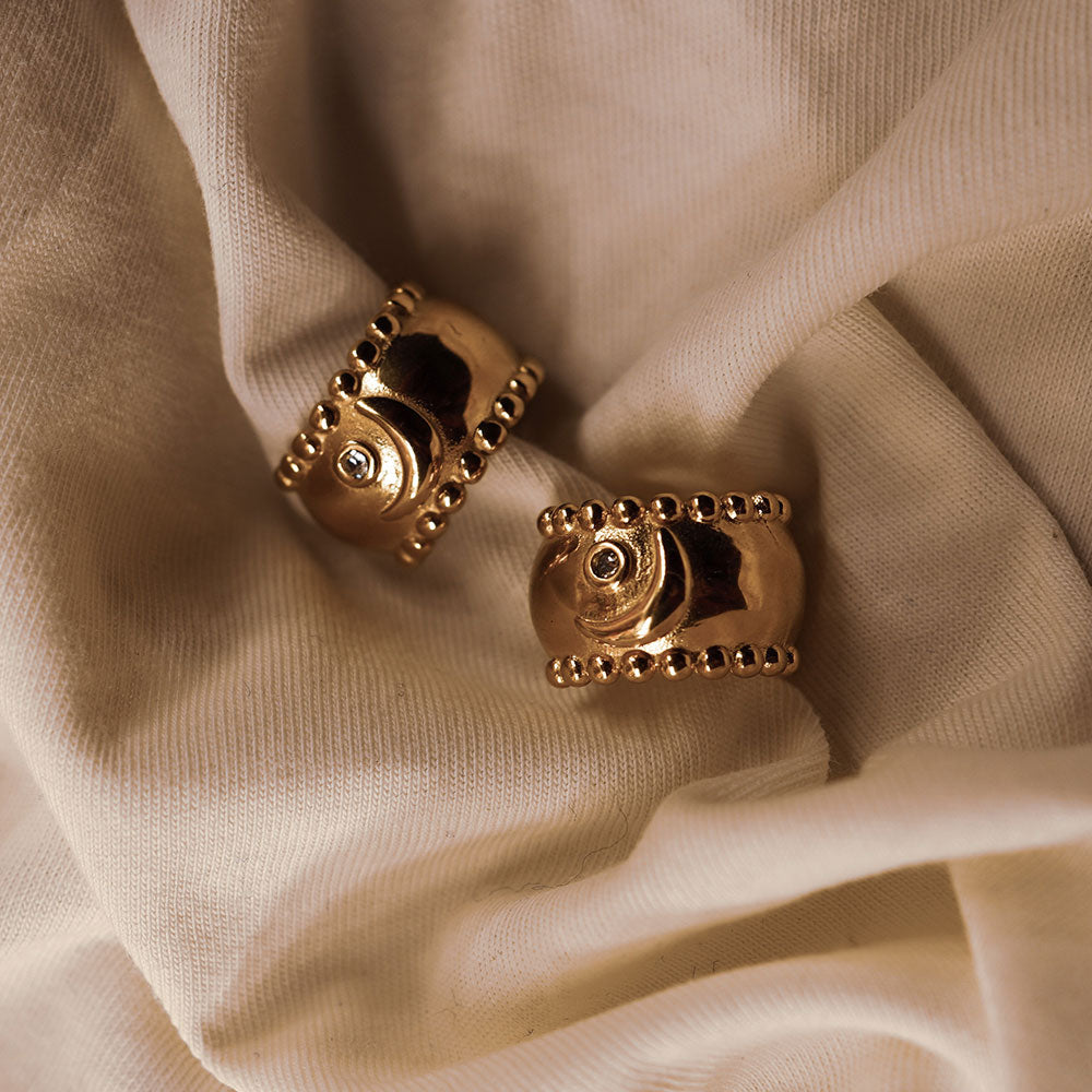 Simbolo di eternità e mistero. La luna protagonista dei nostri mini hoop. Moon come simbolo di mistero e sensualità.